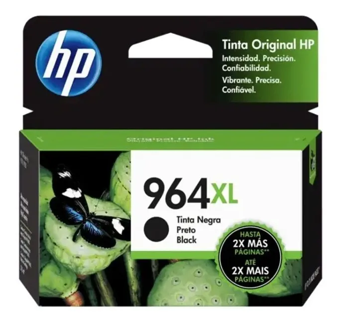 El Cartucho HP 964XL Negro Original de 51.5ml (código 3JA57AL) es un consumible de tinta genuino de HP, diseñado para impresoras multifunción HP OfficeJet Pro que requieren un alto volumen de impresión de documentos en negro, con énfasis en la velocidad y la eficiencia. Este cartucho de alta capacidad utiliza tinta pigmentada, lo que garantiza una durabilidad superior y resistencia al agua en los textos.