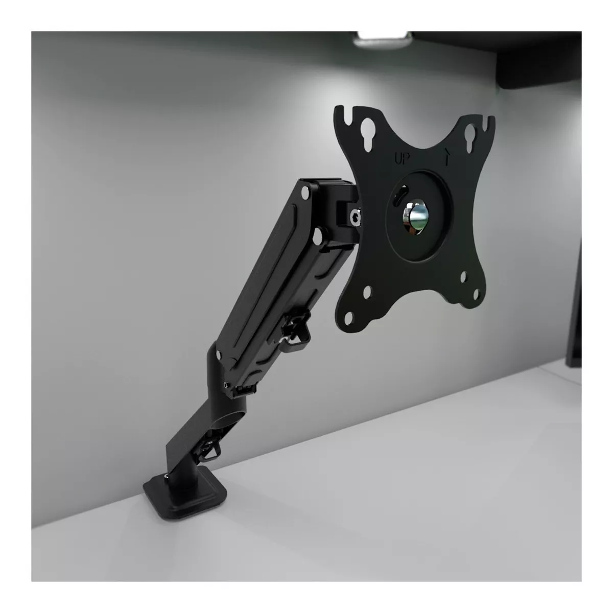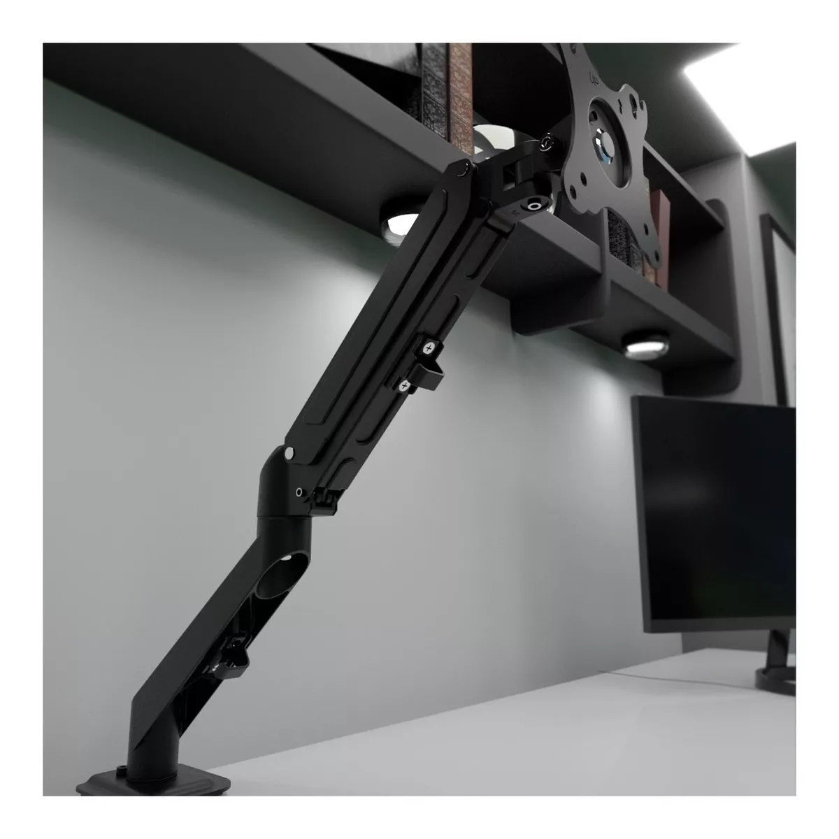 - Base resistente y estable: La base del soporte está fabricada con acero de alta calidad y cuenta con un diseño robusto que garantiza la estabilidad del monitor incluso en entornos de trabajo exigentes.