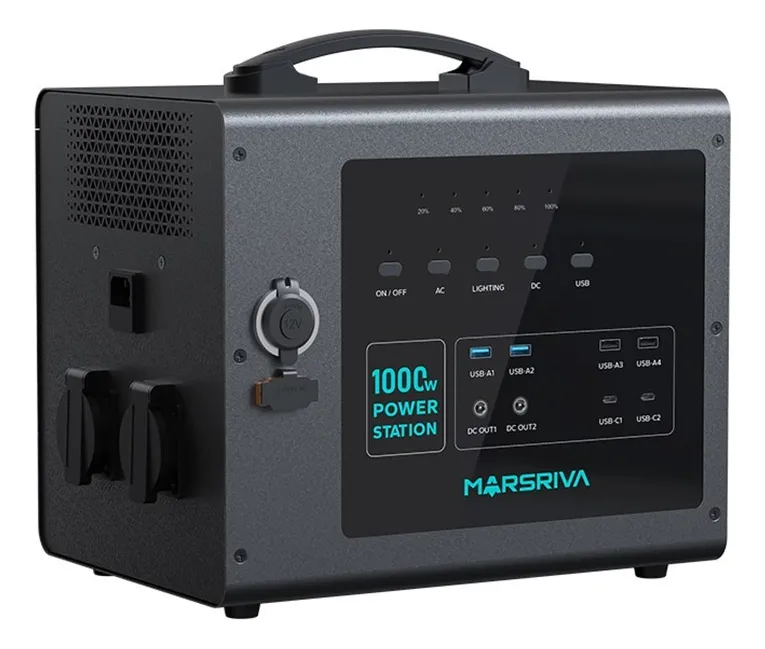 Marsriva MP10 | Estación de Energía Portátil 1000W | 48V 24,500mAh | DC/AC | USB-C & USB 2.0
