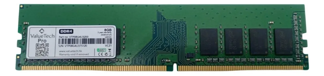 Memoria RAM Valuetech 8GB DDR4 3200MHz UDIMM para PC – Modelo VTP08G4U3200HS