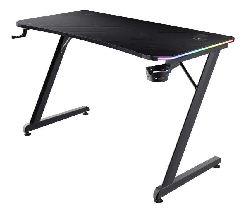 - Diseño: Mesa de escritorio para gaming con bordes biselados.