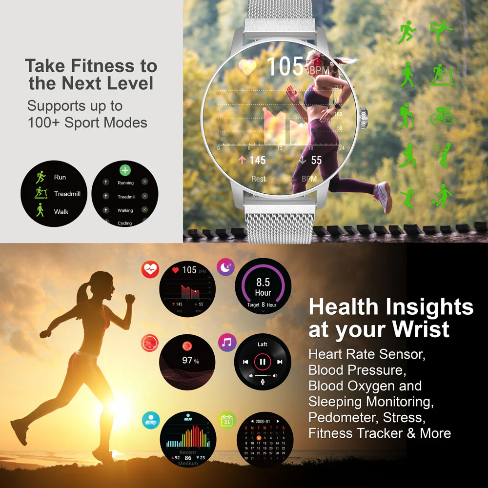 • Monitoreo de Salud Diario: Ofrece funciones útiles para seguir tu ritmo cardíaco, oxígeno en sangre, presión arterial y patrones de sueño, proporcionando una visión general de tu bienestar.