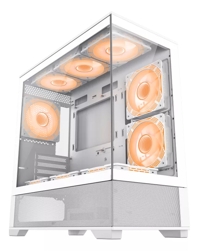 Incluye ventiladores HURRICANE RGB de 4x120 mm: mejore el aspecto de su carcasa y, al mismo tiempo, mejore su flujo de aire con 4 de nuestros ventiladores RGB incluidos.