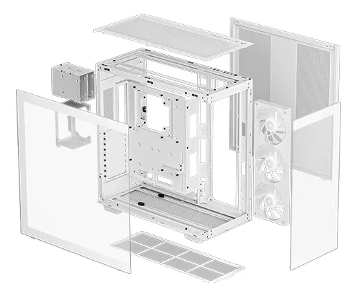 Excelente flujo de aire: diseño de flujo de aire optimizado con múltiples opciones de montaje de ventiladores y radiadores, lo que garantiza un enfriamiento eficiente para componentes de alto rendimiento.