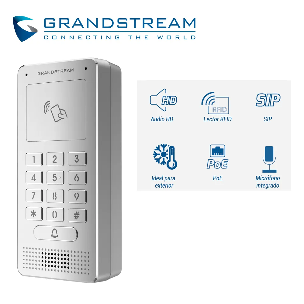 El Grandstream GDS3702 es un intercomunicador IP de audio HD diseñado para ofrecer seguridad y control de acceso en entornos residenciales y comerciales. Con tecnología avanzada de audio, carcasa resistente y compatibilidad con sistemas SIP, es una solución confiable para monitoreo y comunicación.