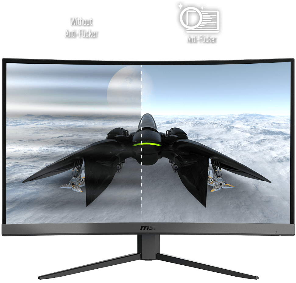 Los monitores genéricos suelen tener una frecuencia de parpadeo de unas 200 veces por segundo, que es imperceptible a simple vista, pero puede causar fatiga con el tiempo. La tecnología Anti-Flicker de MSI proporciona una experiencia de visualización muy cómoda al reducir la cantidad de parpadeos.