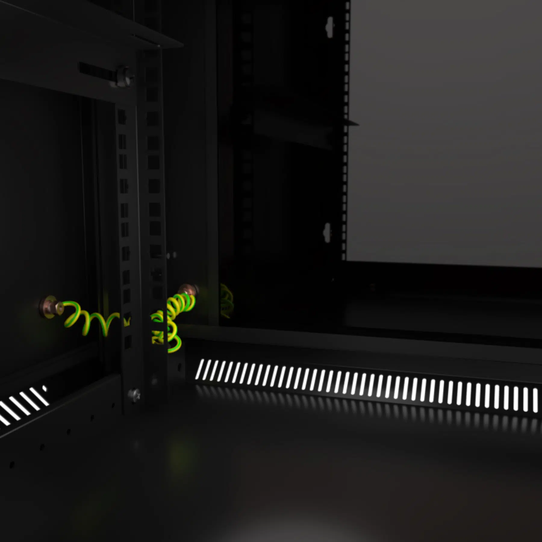Compatible con racks de 19 pulgadas conforme al estándar EIA, y con orificios cuadrados, redondos y roscados.