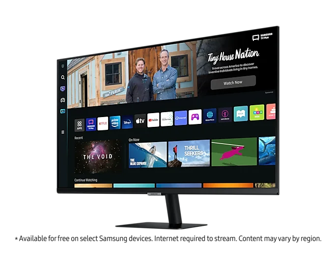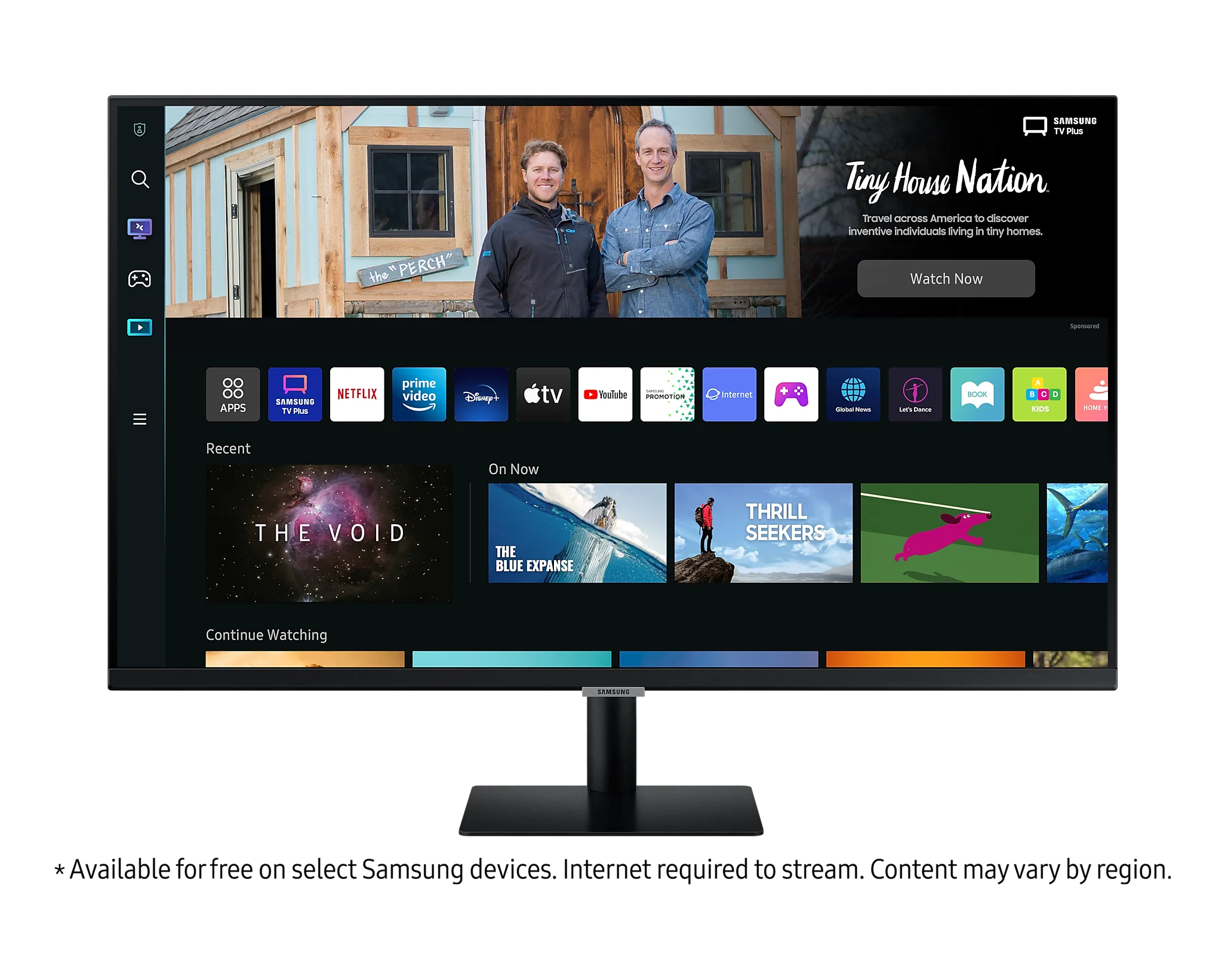El Samsung M50B es un monitor inteligente de 32 pulgadas que va más allá de la simple visualización. Con funciones integradas de Smart TV, este monitor se convierte en un centro de entretenimiento versátil para tu escritorio.