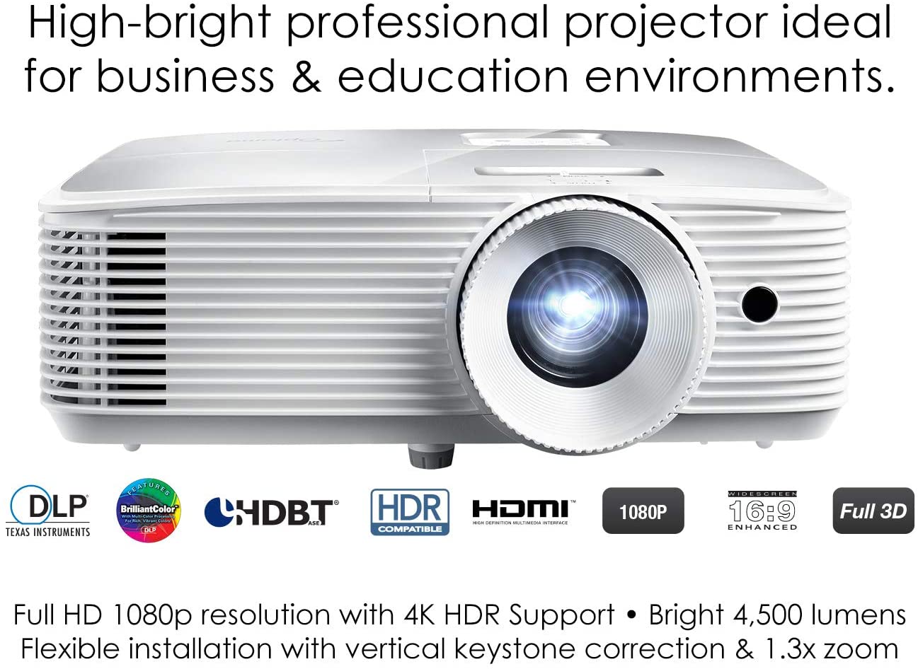 Optoma EH412 1080P HDR DLP Proyector profesional | Super brillante 4500 lúmenes | Presentaciones empresariales, aulas y salas de reuniones | Vida útil de la lámpara de 15.000 horas | Entrada HDR 4K | Altavoz integrado, blanco