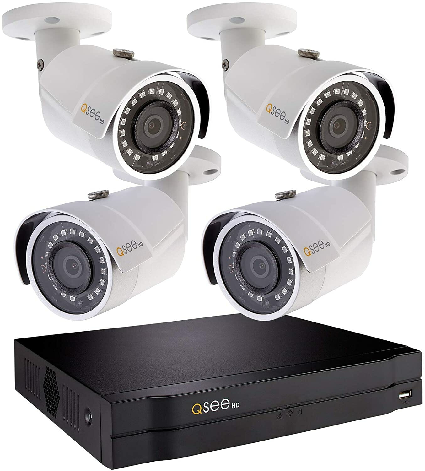 Q-See – Sistema de seguridad para el hogar (QC894-4ES-1) 4 canales 1080p HD NVR con 1TB disco duro y H.264 Compresión de almacenamiento de vídeo, 4 cámaras resistentes a la intemperie con resolución de grabación de 1080p y 98′ de visión nocturna, para interiores y exteriores, compatible con teléfonos inteligentes .