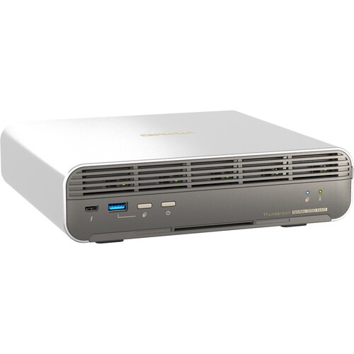 Incluye 5 bahĂ­as E1.S NVMe PCIe Gen3x2 (compatibles con M.2 2280 mediante adaptadores), 2 puertos Thunderbolt 4, 1 puerto 10GbE, 1 puerto 2.5GbE, y salida HDMI 1.4b. Su GPU integrada Intel Iris Xe permite transcodificaciĂłn 4K, ediciĂłn RAW y colaboraciĂłn en tiempo real. Ideal para flujos de trabajo exigentes en Mac y Windows, virtualizaciĂłn ligera, backup hĂ­brido y aceleraciĂłn IA con Intel OpenVINO.