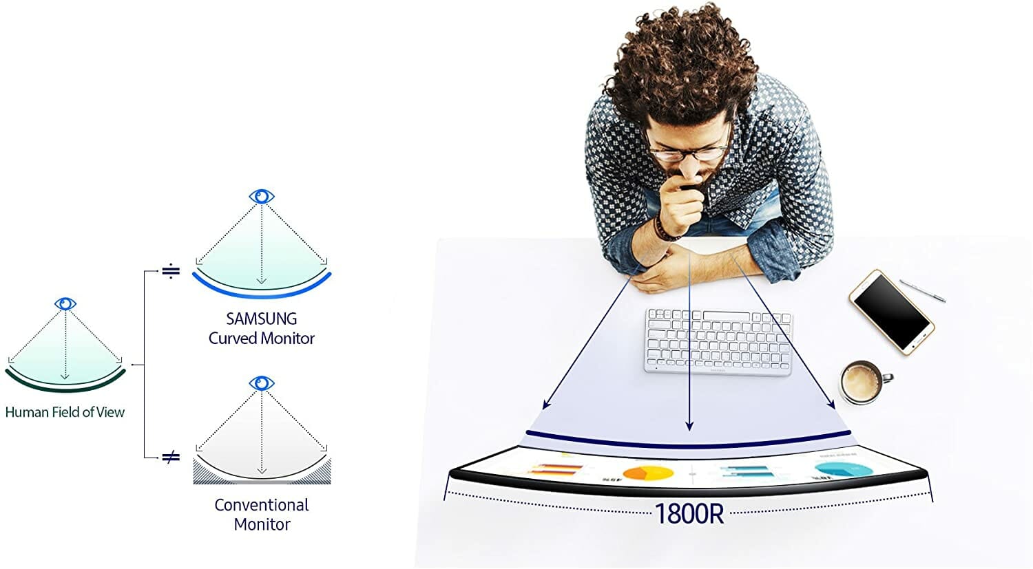 • Pantalla curva 1800R: Mayor comodidad visual y sensación de inmersión.
