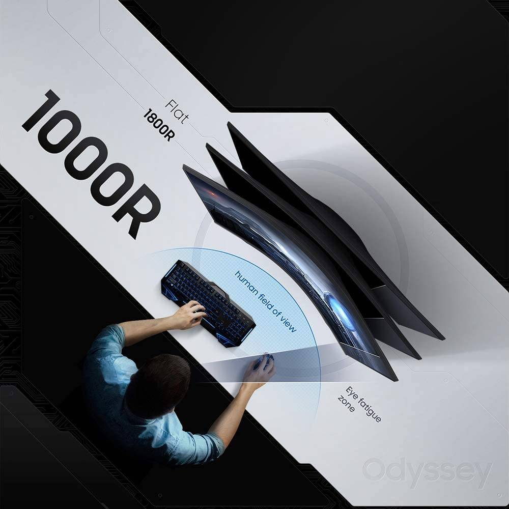 • Resolución WQHD: el monitor WQHD ultraancho muestra más contenido en pantalla con una experiencia de monitor dual con una curvatura de 1000R para crear un campo visual humano que proporciona comodidad ocular cuando juegas por largos períodos de tiempo.