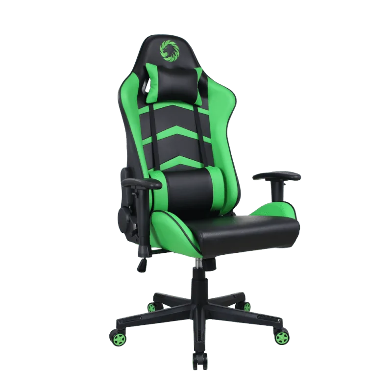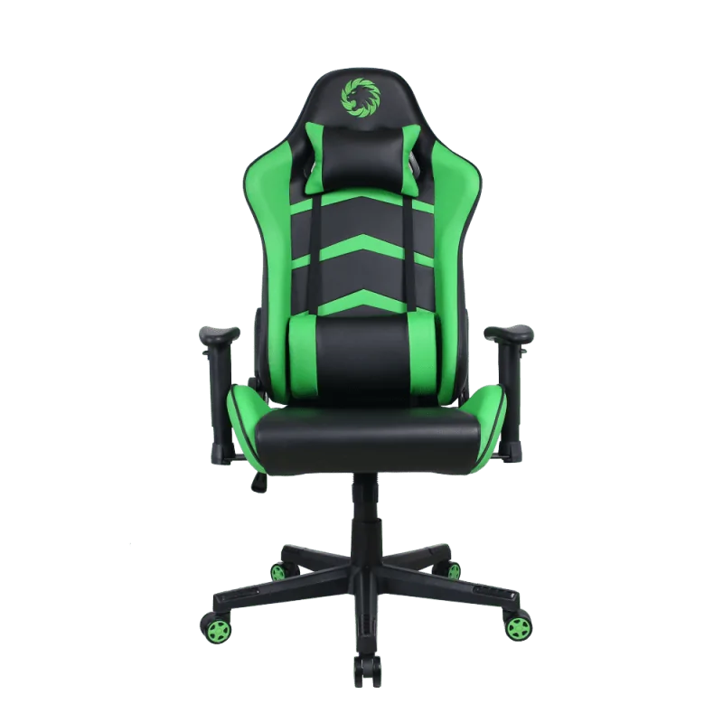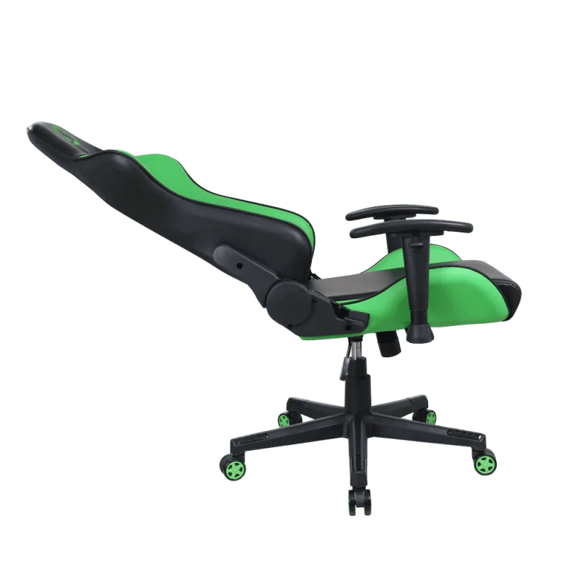 Silla gamer GameMax GCR09 GR con diseño ergonómico tipo racing, respaldo reclinable, elevador de gas, tapizado en cuero sintético y base resistente. Ideal para gaming, oficina y home office.
