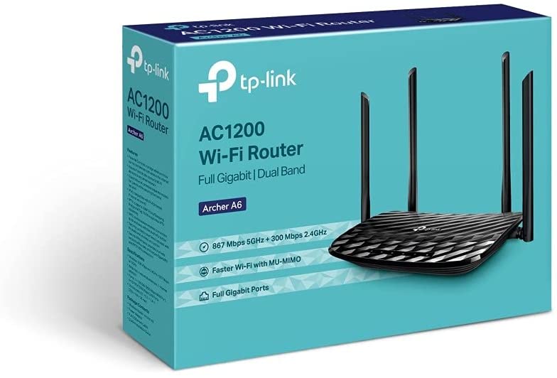 Router WiFi TP-Link AC1200 Gigabit (Archer A6) – Enrutador de Internet inalámbrico Mu-MIMO de doble banda de 5 GHz, compatible con WiFi y modo AP, cobertura de largo alcance