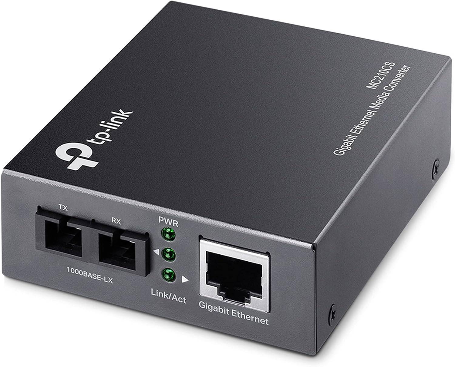TP-Link Convertidor de medios de fibra Gigabit SFP a RJ45 | Convertidor de fibra a Ethernet | Puerto RJ45 de 10/100/1000Mbps a fibra monomodo 1000Base-LX (MC210CS) gris