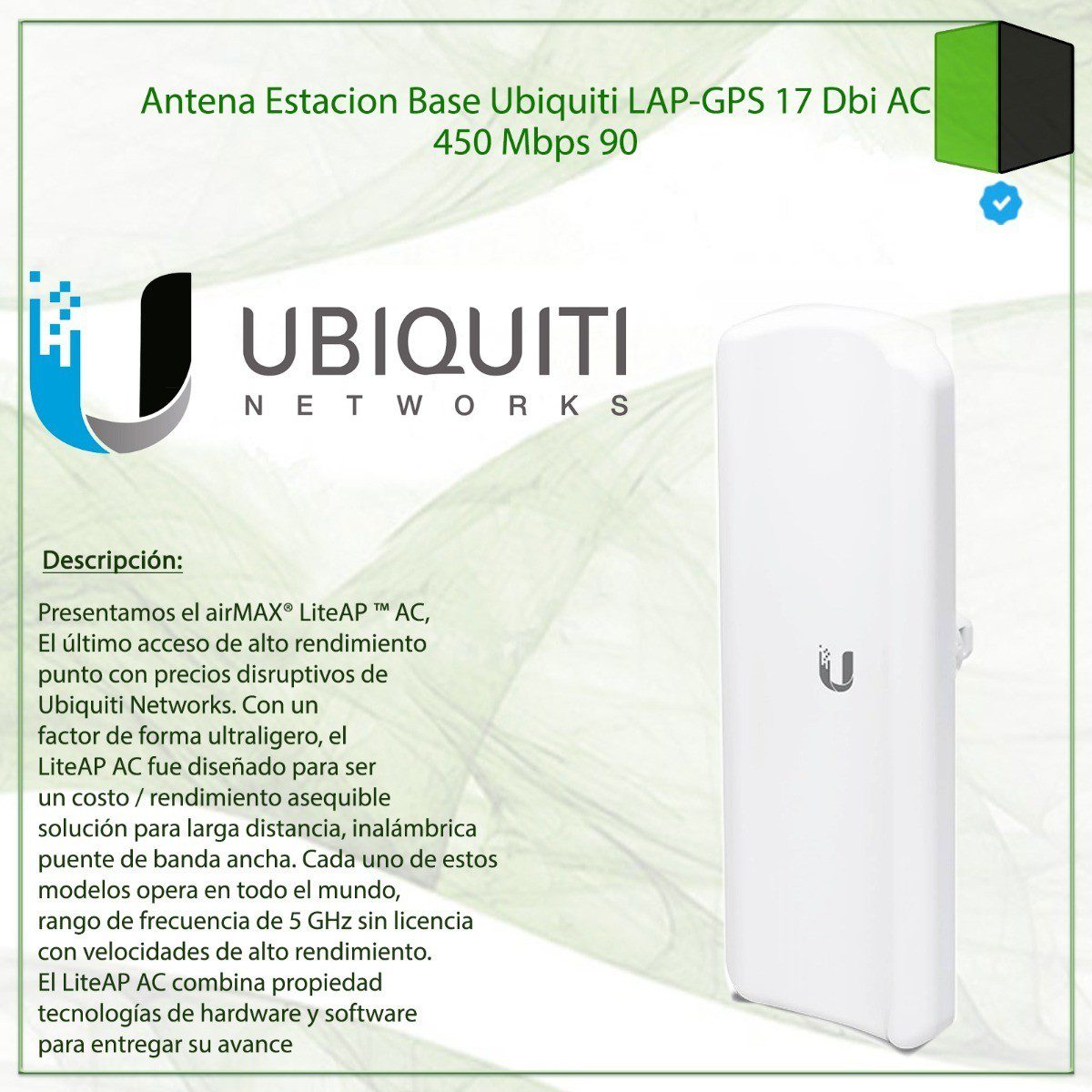 El Ubiquiti LAP-GPS es una solución de alta ganancia diseñada para mejorar la cobertura y el rendimiento de las redes Wi-Fi. Con su antena direccional de 17 dBi y capacidad para manejar múltiples clientes simultáneamente, este dispositivo es ideal para una amplia gama de aplicaciones, desde proveedores de servicios de internet hasta eventos al aire libre. Su construcción robusta y fácil instalación lo convierten en una opción confiable y eficiente.