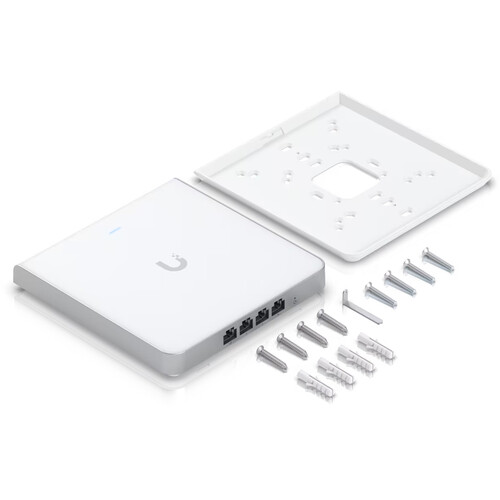 El Ubiquiti UniFi U6 Enterprise In-Wall es un punto de acceso Wi-Fi 6E Tri-Banda diseñado para montaje en pared, con 10 flujos espaciales, puerto 2.5GbE PoE+, y switch LAN integrado. Ofrece conectividad robusta y discreta para entornos empresariales de alta densidad que requieren rendimiento extremo y estética integrada.