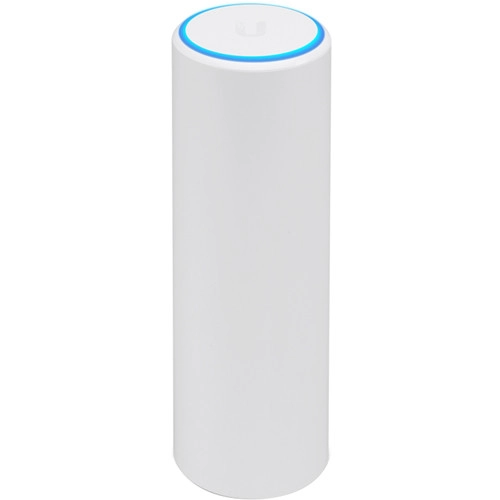 Diseñado para uso interior y exterior, incluye soportes para montaje en mesa, pared o poste. Su forma cilíndrica y minimalista permite una instalación discreta en cualquier entorno. Se gestiona fácilmente desde la plataforma UniFi Network, vía web o app móvil.