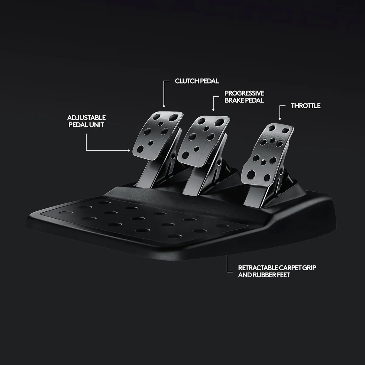 - Pedales Sensibles a la Presión: Incluye una unidad de pedales independiente con acelerador, freno y embrague.