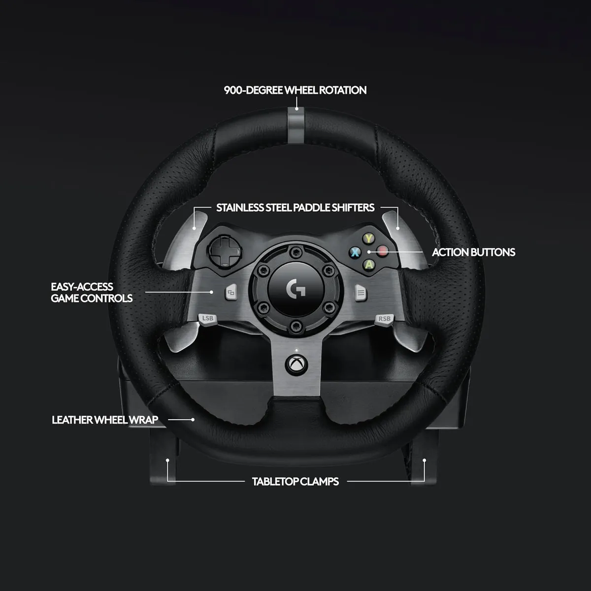 Volante Logitech G920 Driving Force con Force Feedback, compatible con Xbox y PC, conexión USB, pedales incluidos, giro de 900°, materiales premium. Ideal para simuladores como Forza, F1, Assetto Corsa y más.