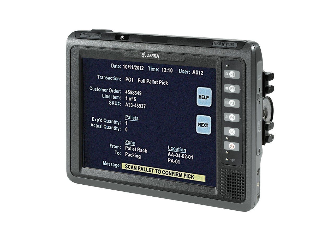 Agregue un escáner Zebra con cable o inalámbrico para capturar con rapidez y exactitud cualquier código de barras, incluso aquellos sucios o dañados. Agregue un micrófono con botón de transmisión para permitir la comunicación verbal instantánea con los operadores de vehículos.